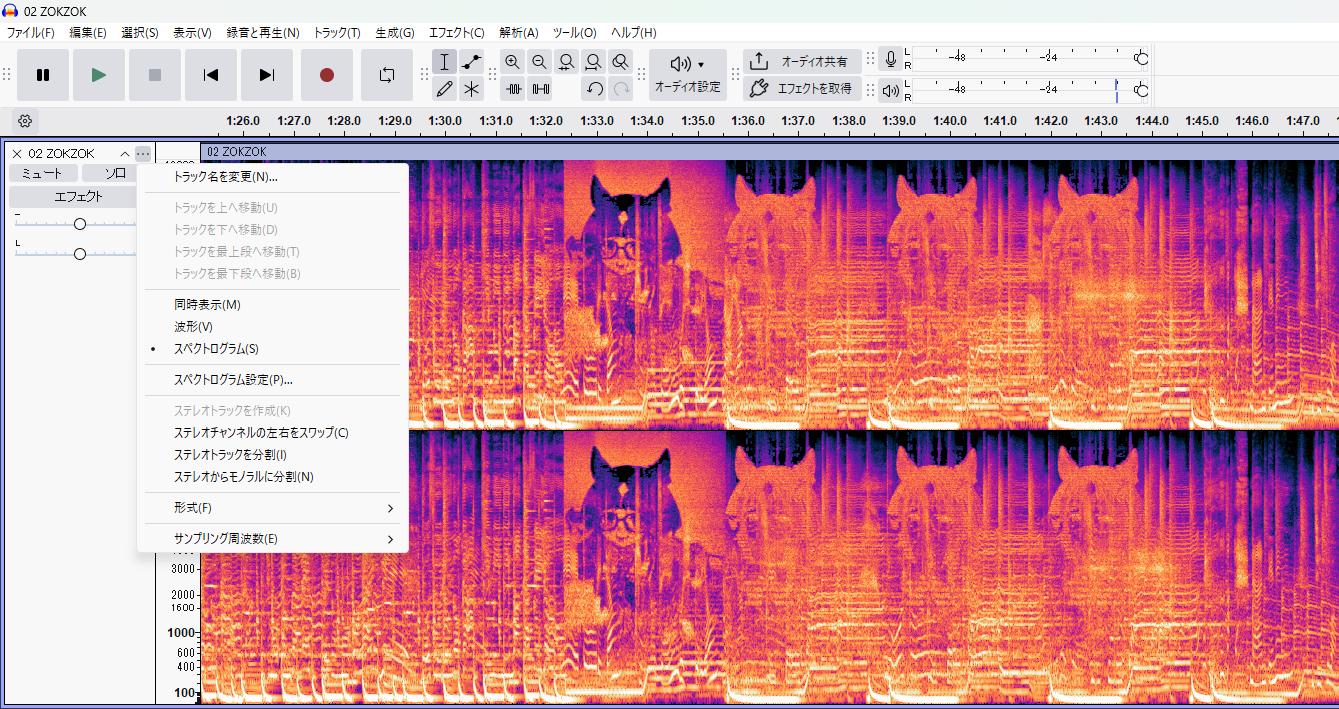 | … | 3826/01/26(月)21:12:06No.1396158413+Audacityに音源突っ込んでスペクトログラム表示にするだけで自分で見れるよすげぇ… |