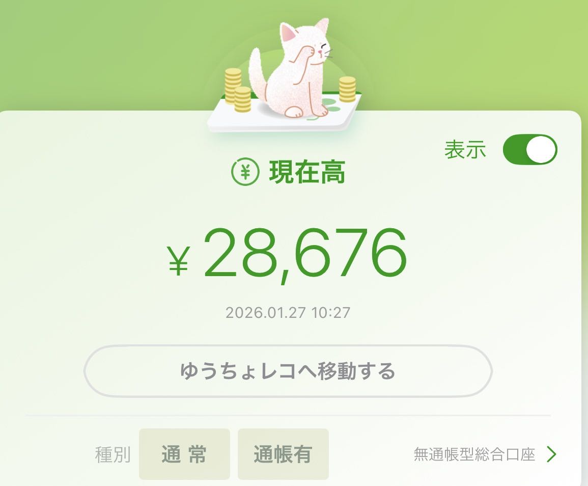 | … | 6426/01/27(火)11:08:47No.1396298920+2つ口座持ってるけど分けるの面倒でゆうちょしか使ってない… |