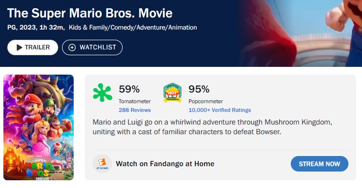 | … | 59626/01/27(火)13:30:40No.1396332219+>「マリオファンに向けたマリオ映画としては100万点、評論家としてストーリー、演技、演出、音楽をそれぞれ採点しろと言われると全体で60点くらいになる」 |