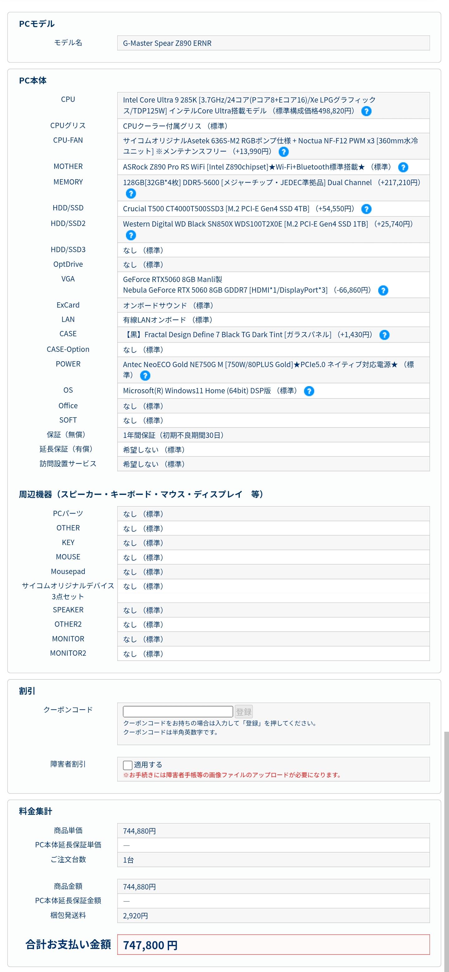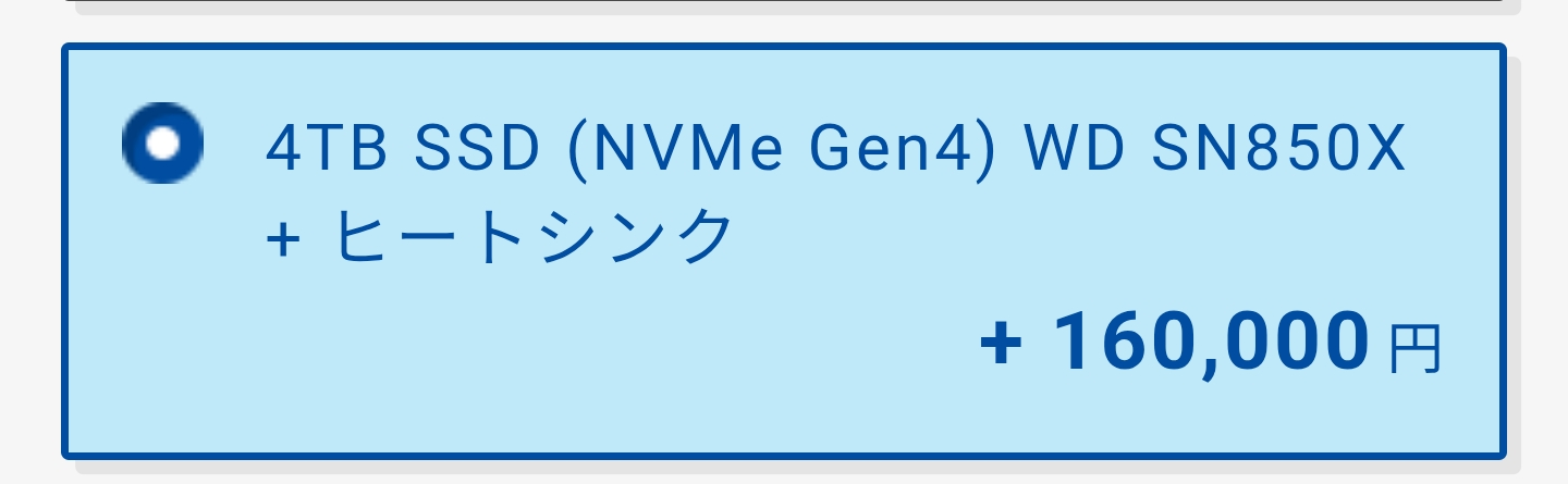| … | 93926/01/27(火)14:30:53No.1396344969+カスタマイズの途中からとにかく値段上げてイキろうとしたんだろうけど最初のグラボの選択が低いあたりそこではひよってる |