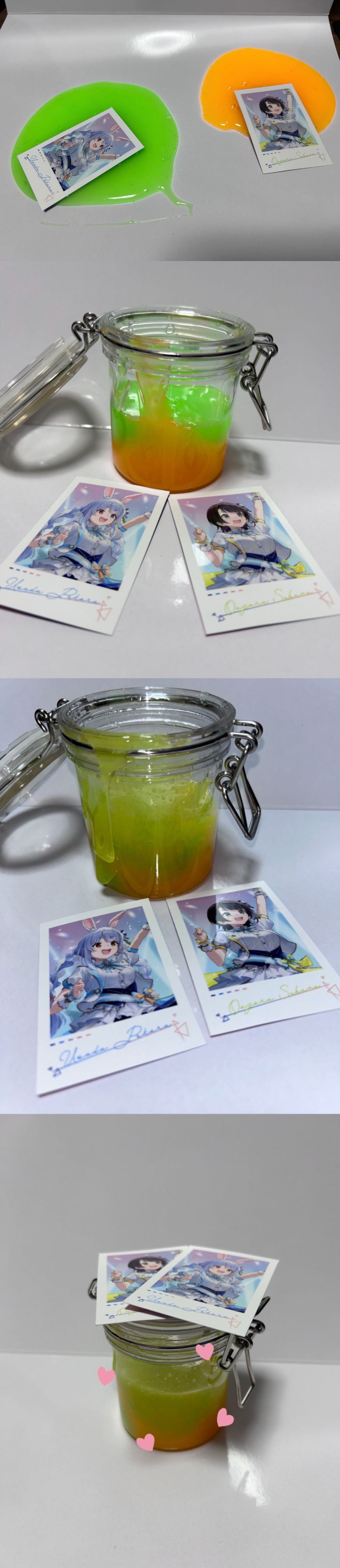 | … | 46126/01/27(火)21:03:18No.1396449751そうだねx2>ふと思ったんだけどイメージカラーのスライムを瓶詰めしてそれに生誕記念グッズとかの直筆サインカードを貼り付けたら人格排泄した推しの成れの果てって感じになるんじゃないか? |
