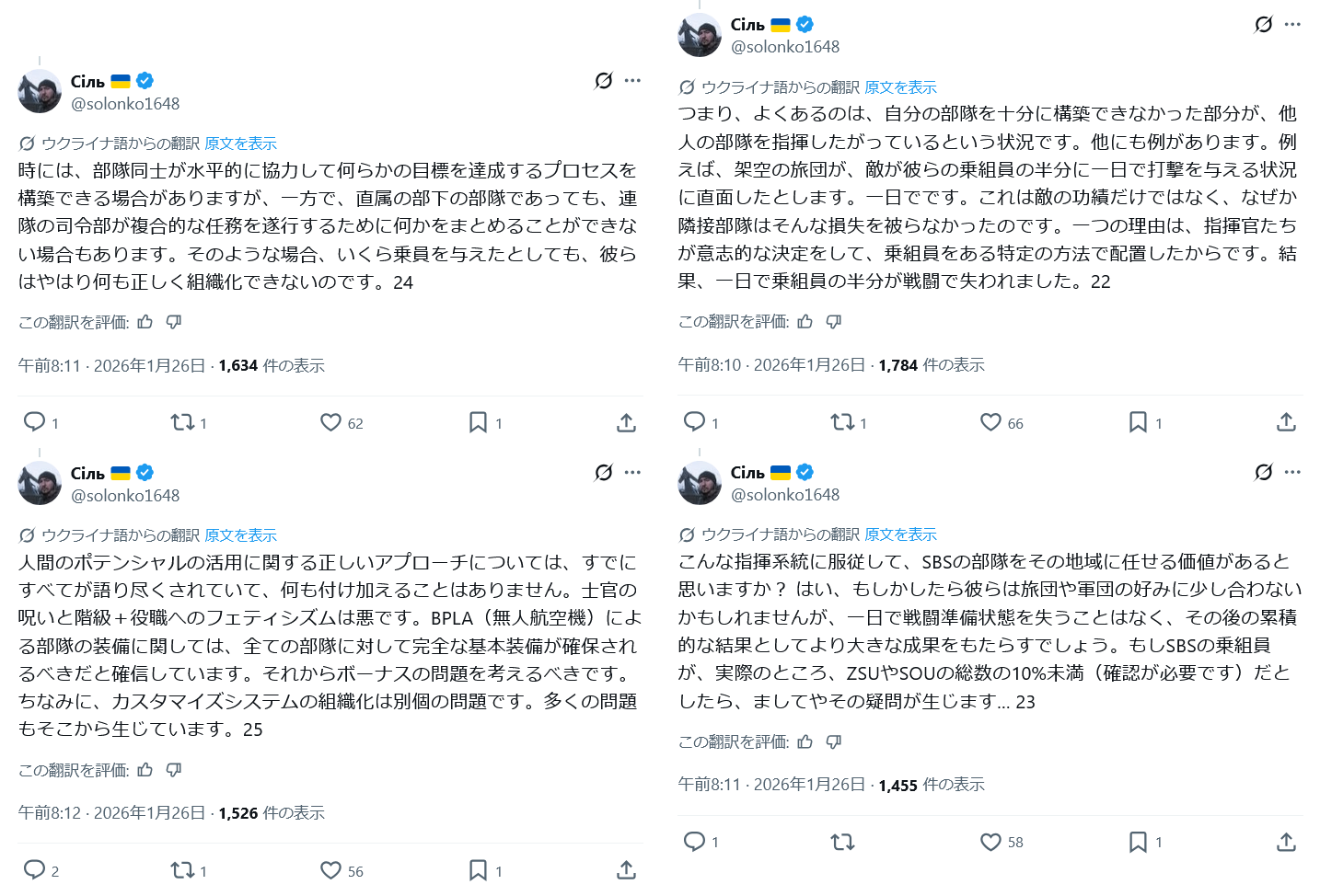 先日ウクライナのドローン部隊が前線の歩兵が本当に倒してくれるもん倒してないって文句が前線から出てるってスレ立てたんだけどこのスレは古いので、もうすぐ消えます。