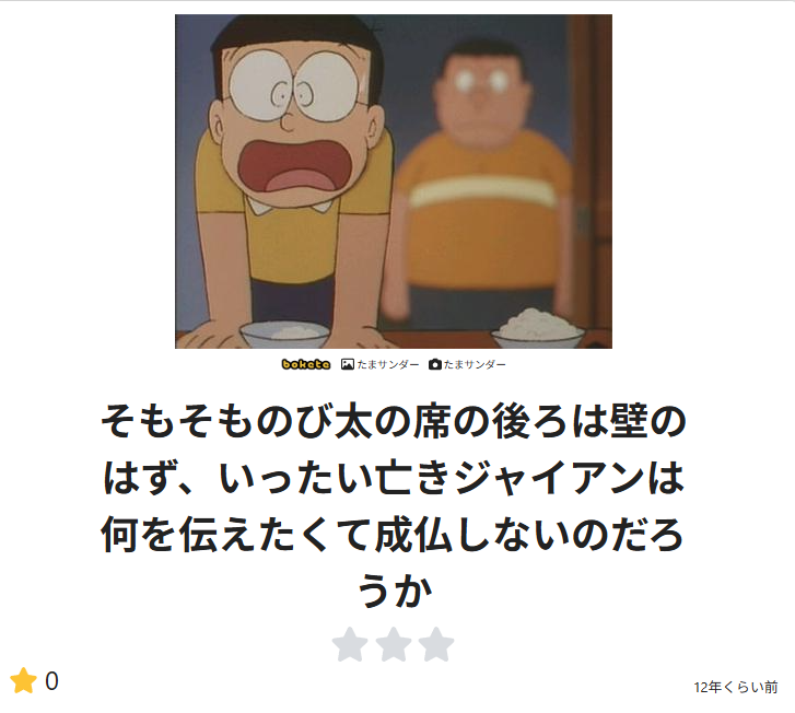 | … | 9326/01/27(火)21:52:36No.1396469745+大きな漬物石かと思ったら、ジャイアンだった |