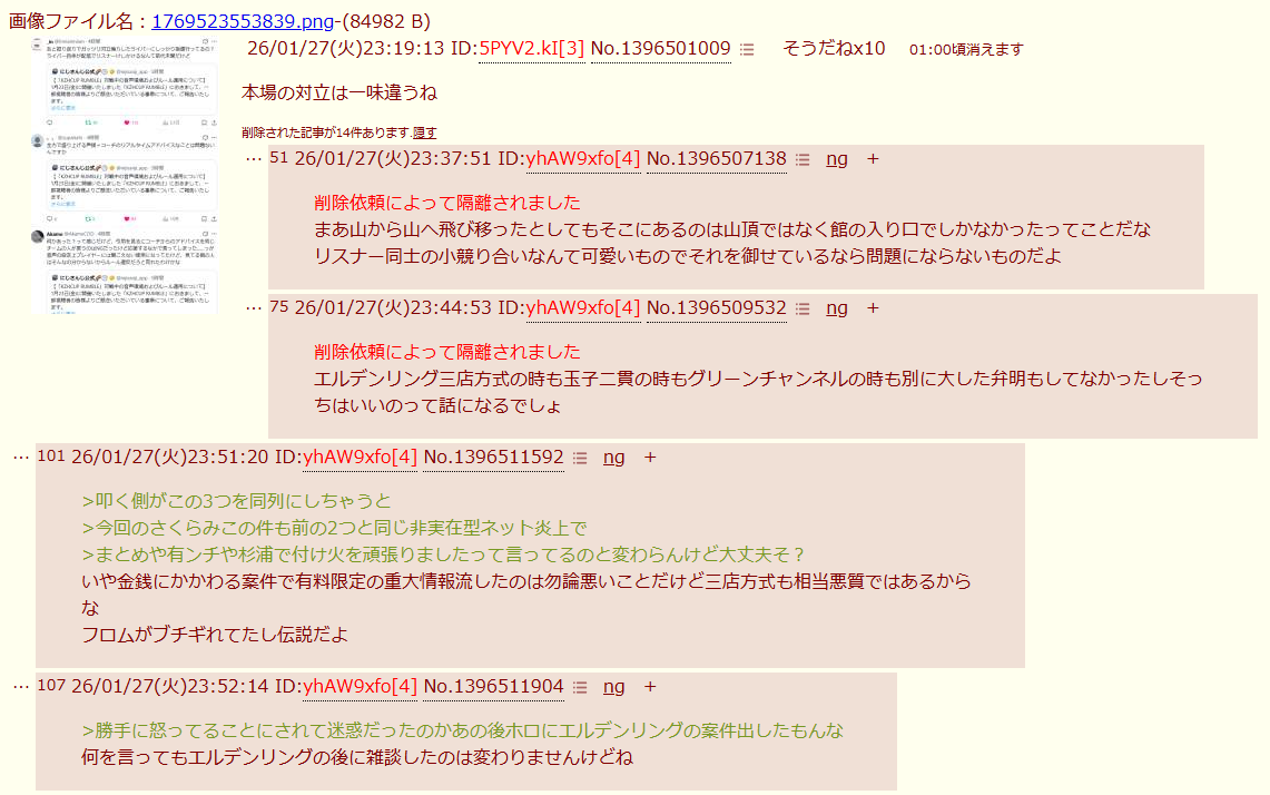 | … | 53126/01/28(水)00:44:27No.1396525841そうだねx4>にじさんじアンチのツールでID出されたか… |