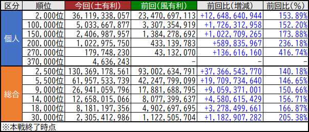 最終リザルトはこんな感じでしたわ