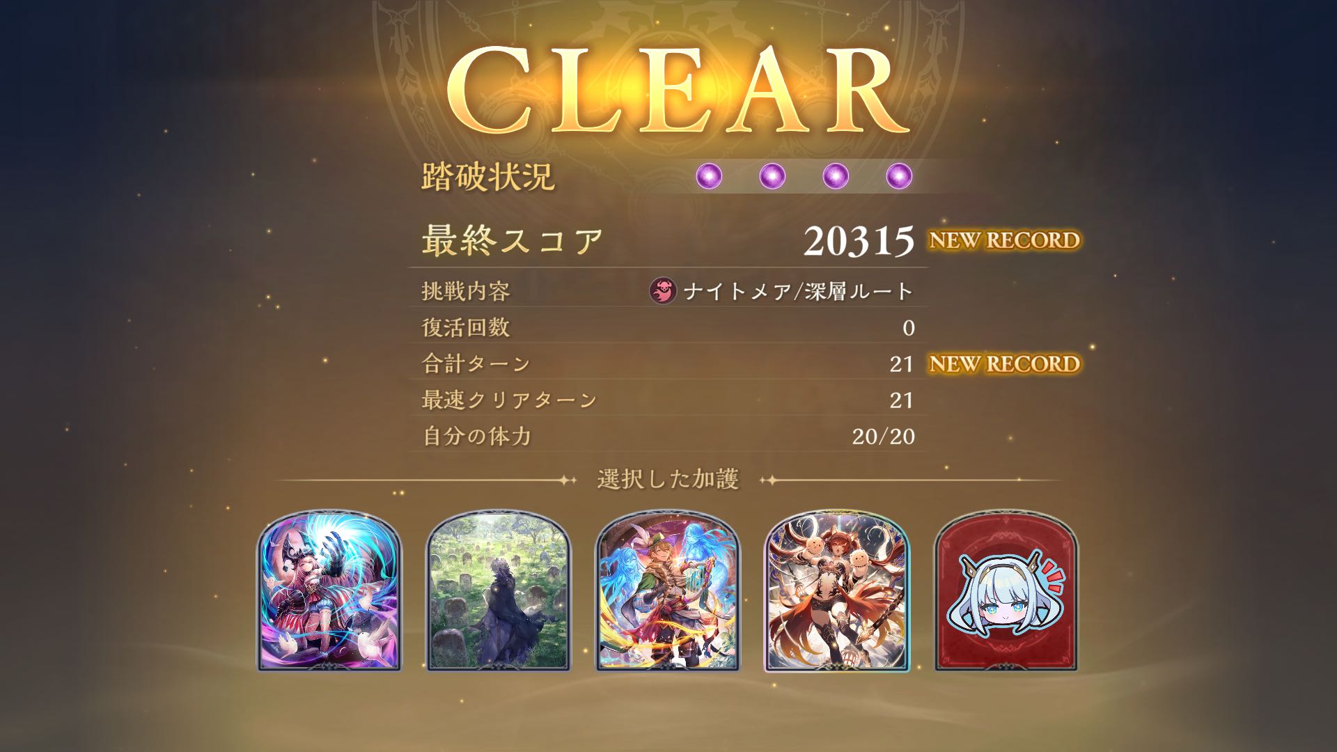 | … | 12826/01/28(水)08:48:26No.1396565430+破壊でも序盤のテンポ損なわないために人形系の加護取ると安定すルナ |