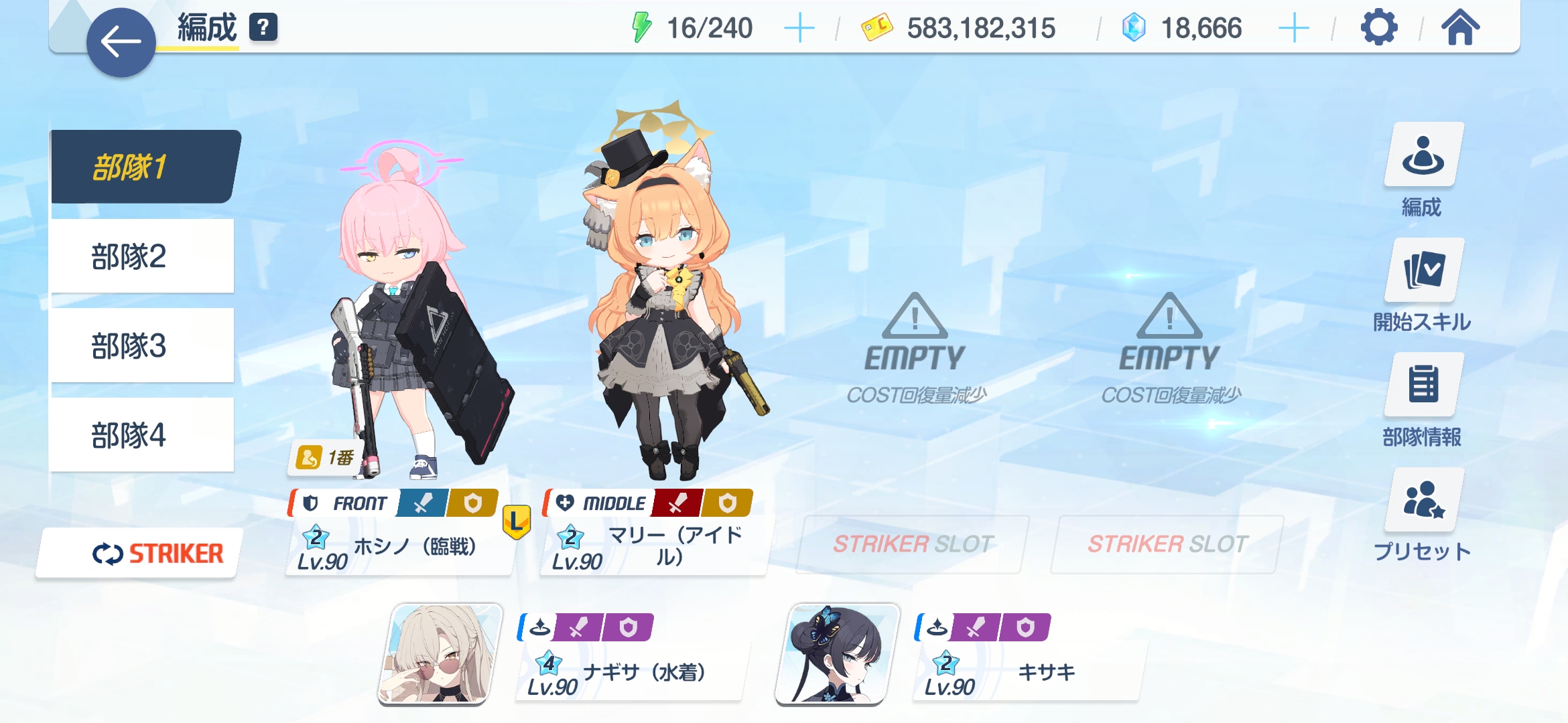 | … | 89926/01/28(水)09:30:50No.1396570941+>>アイドルマリーは優秀だと思ってたけどなんか思ってたより4倍くらい出番が多い >コス2ストライカーヒーラーコスト圧縮能力持ちとか腐る要素がないんよ 言うてココナちゃんでなんとかなるだろうし必須な時だけレンタルすればえ |
