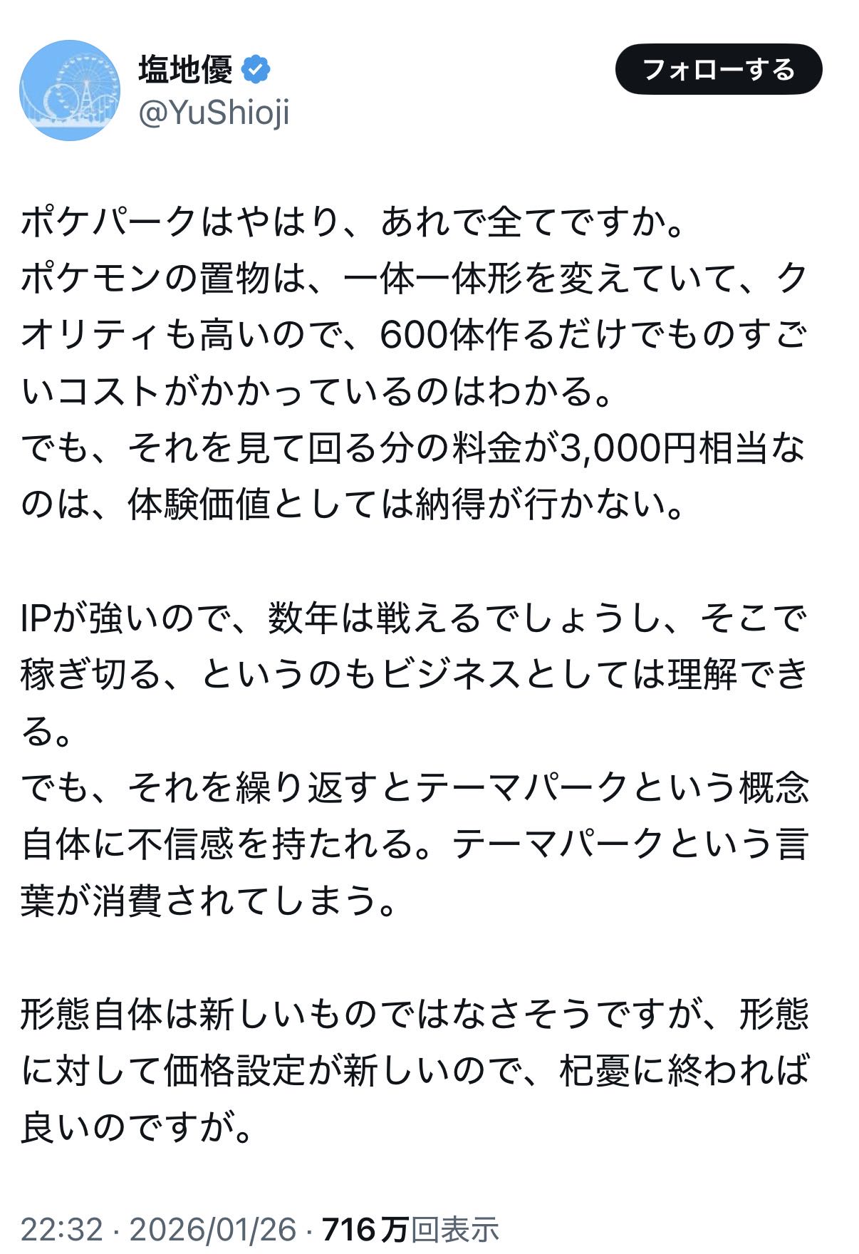 ポケパークって結局ファン向けの施設であってUSJとかディズニーランドみたいなのを求めるところじゃないよねこのスレは古いので、もうすぐ消えます。