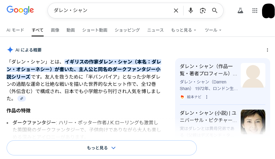 | … | 21626/01/28(水)13:52:12No.1396621240+>ダレン・シャンで検索かけたら科捜研の女の女の顔が出てくるんだけどおれだけ? |