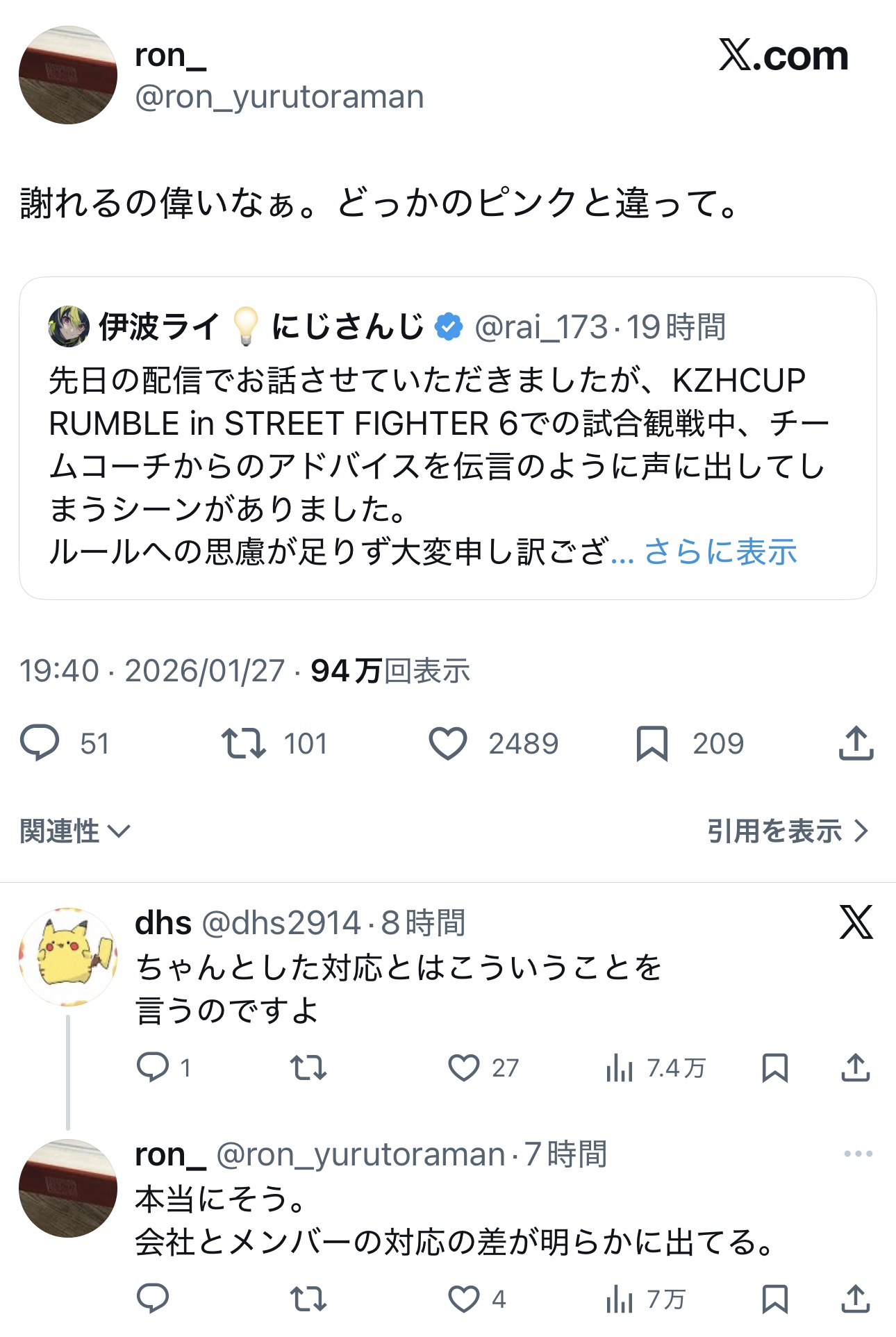 | … | 926/01/28(水)13:58:50No.1396622592そうだねx12日頃よりバーチャルライバーグループ「にじさんじ」・「NIJISANJI EN」を応援いただき、誠にありがとうございます。 |