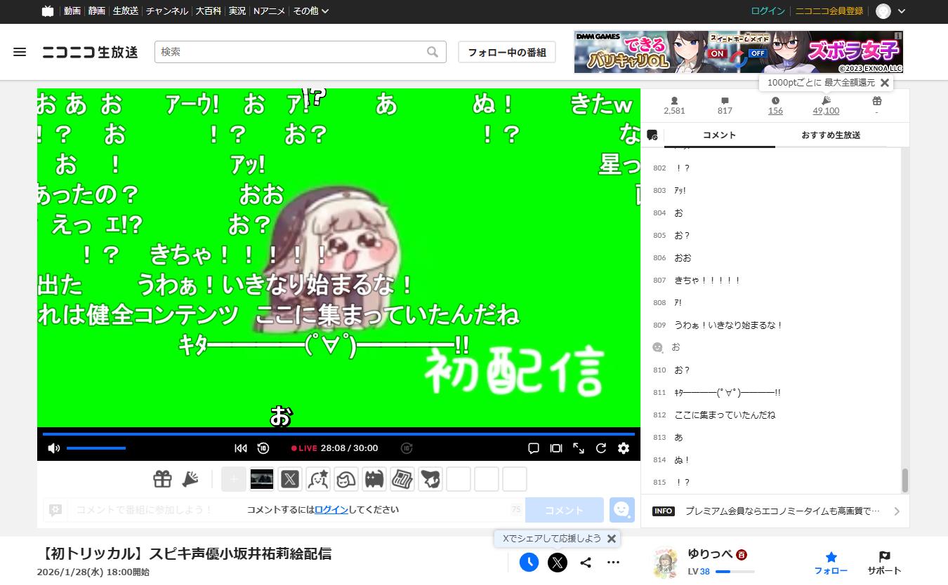 | … | 58226/01/28(水)18:39:32 ID:ZlEw.OrgNo.1396685854+配信慣れしてないおねえちゃんがコメントにウケてるのが初々しいにゃん |
