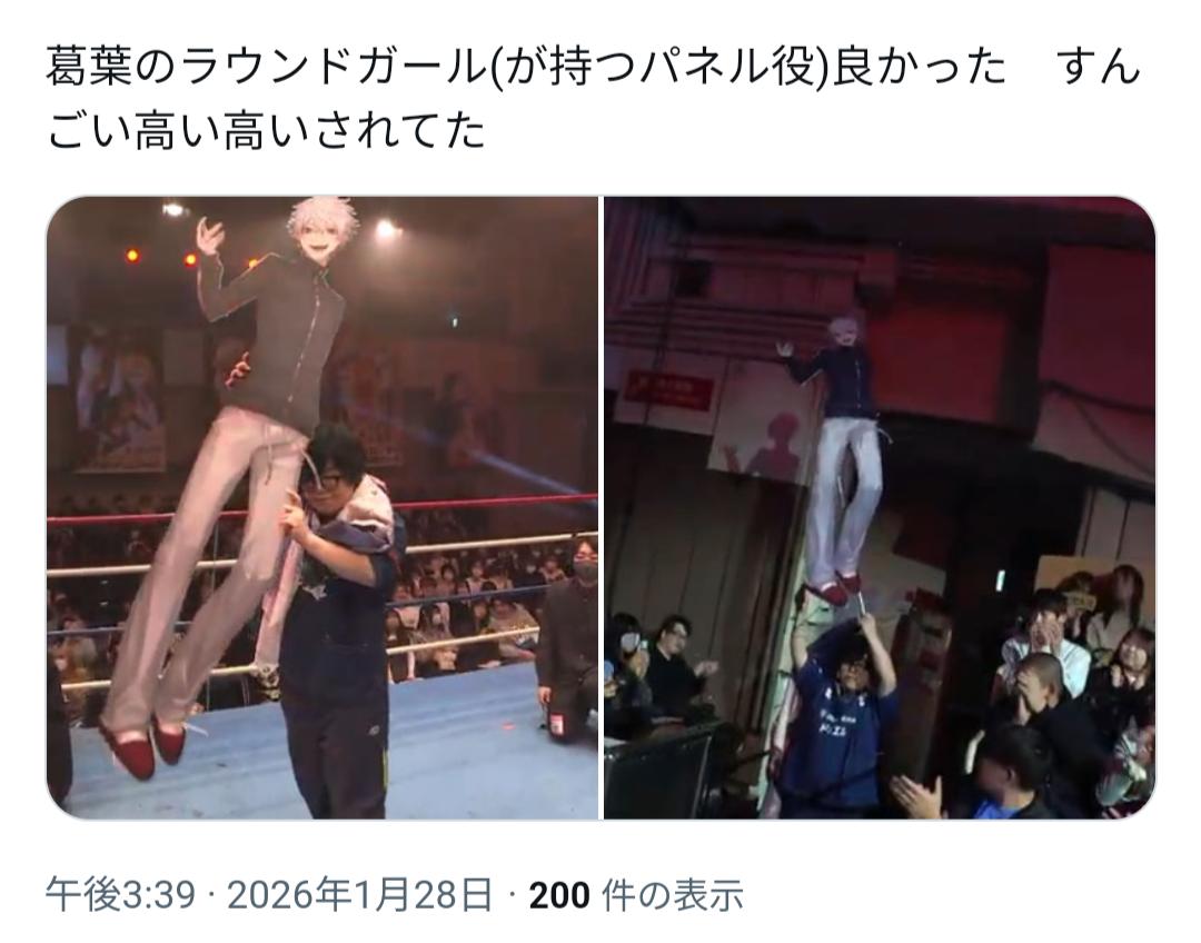 | … | 93826/01/28(水)18:39:00No.1396685687+演者との物理的距離近くていい試合もケツも楽しめる最高の大会じゃんねぇ |