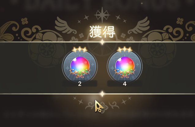 | … | 8826/01/28(水)20:00:59No.1396714504そうだねx1まだ金鍵のかけらもらってないからレイド更新日午前中のデイリーボーナスまでに引きたいの… |