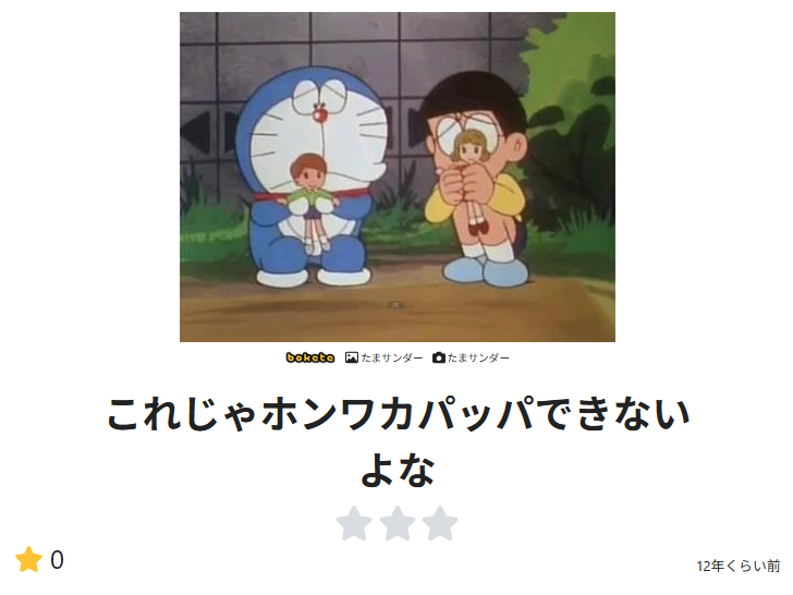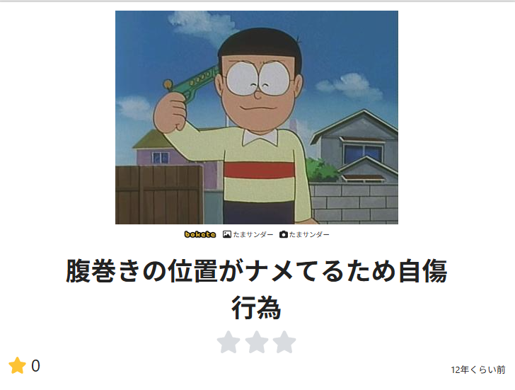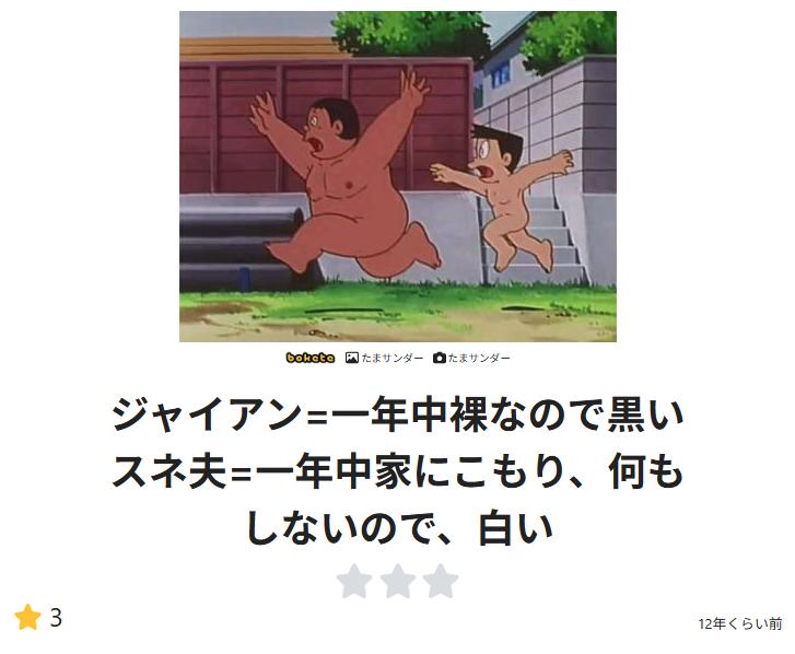| … | 94626/01/28(水)22:05:52No.1396770350そうだねx1>>ガチめのドラえもん好きいない? >単にたまサンの元ネタ回を調べてたことがあっただけだよ >もっとまともな人生を歩め |