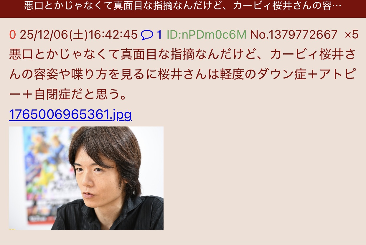 | … | 2526/01/28(水)22:25:10No.1396778502そうだねx2可哀想 |