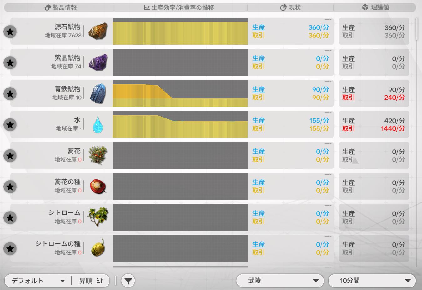 | … | 2126/01/28(水)22:12:01 ID:9/LpEPgENo.1396772957そうだねx1>レポートの実数と理論値の違いがよくわかってないんだけど、これ鉱石生産の実数が理論値より小さい場合ってどっかに採掘機セットし忘れがあるとかそういう事? |