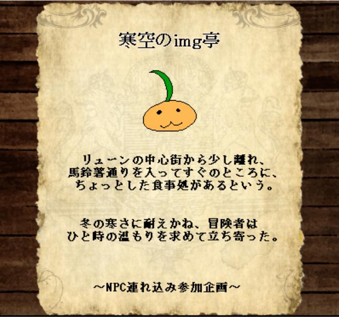 VIPだったら古い月の呼び方とかで宿名作れたと思うんだけどimgのそれっぽいのよくわかんなかったから「寒空のimg亭」となりました