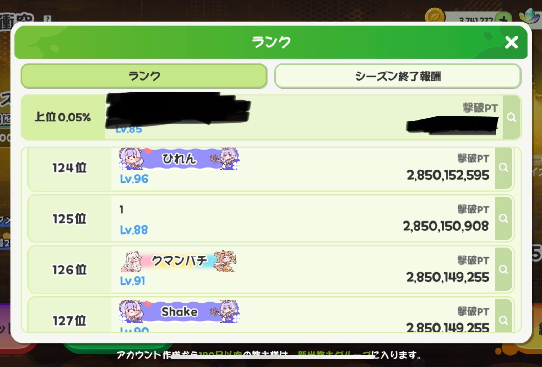 | … | 3526/01/29(木)09:30:19 ID:Z0P0PEAQNo.1396864560+ランク8来たから12倒さないと10%入れないかと思ってたけど倒せなくても意外と行けた感じっぽいにゃん |