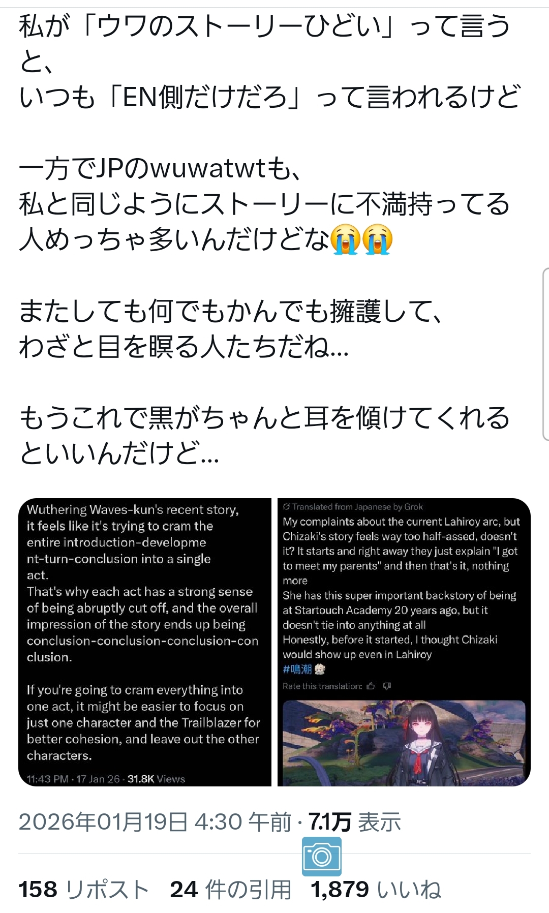| … | 1726/01/29(木)11:57:44No.1396889409そうだねx3まぁ鳴潮の新規も増えてるみたいだしいいことだ |