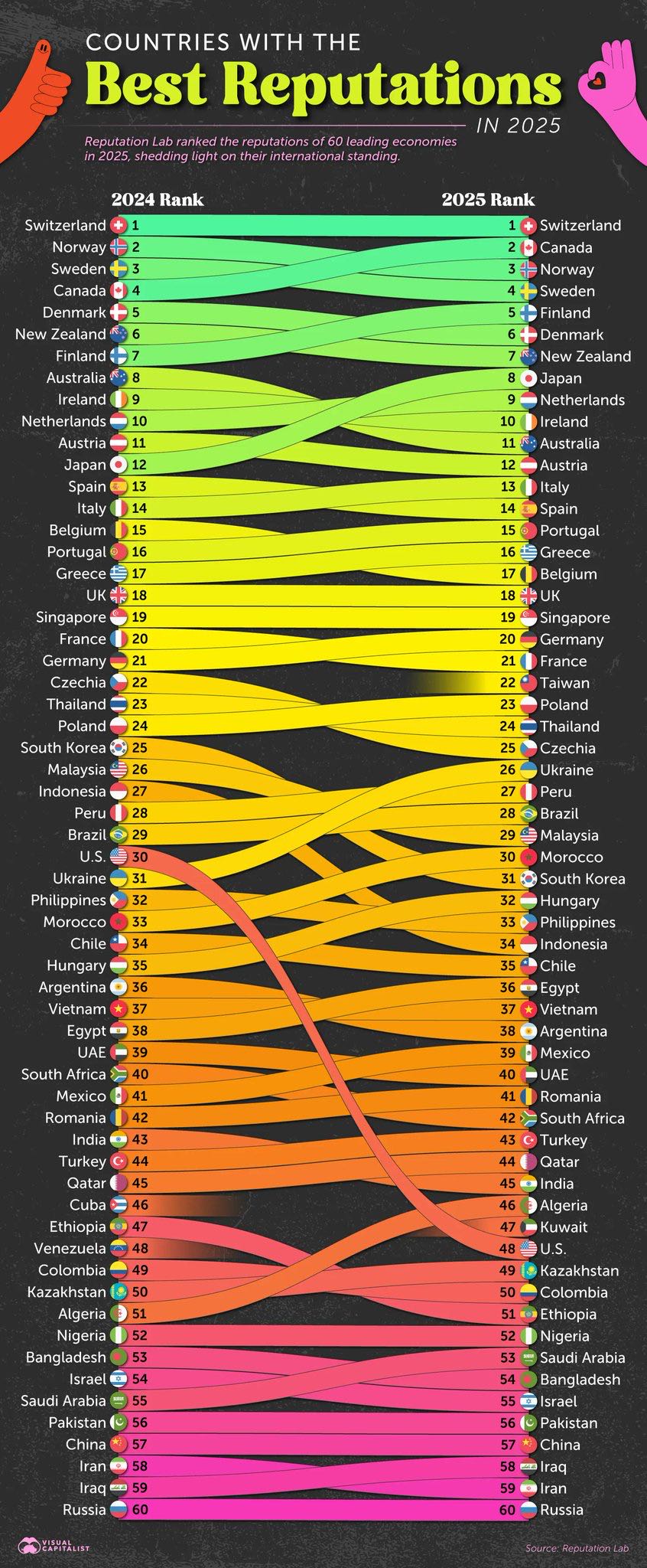 キューバとかベネズエラはランク外に行って逆に台湾とかは急上昇で生えてきたって感じか?
