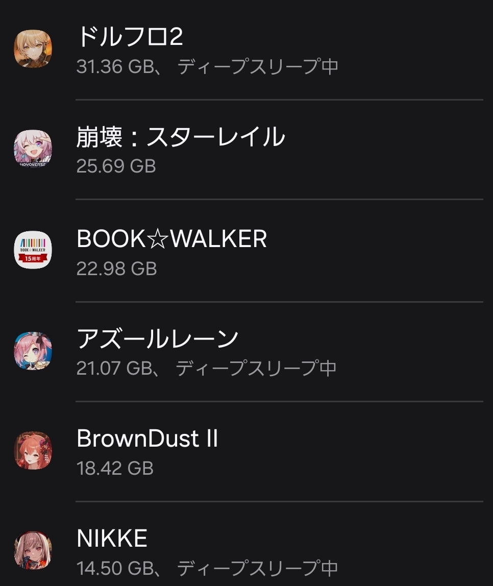 | … | 7726/01/29(木)15:59:33No.1396945978そうだねx1音ゲーは曲削除やストーリーボイス削除がしやすいし3Dモデルも派手に使わないから10GBくらいに収まるのがほとんどじゃないか? |