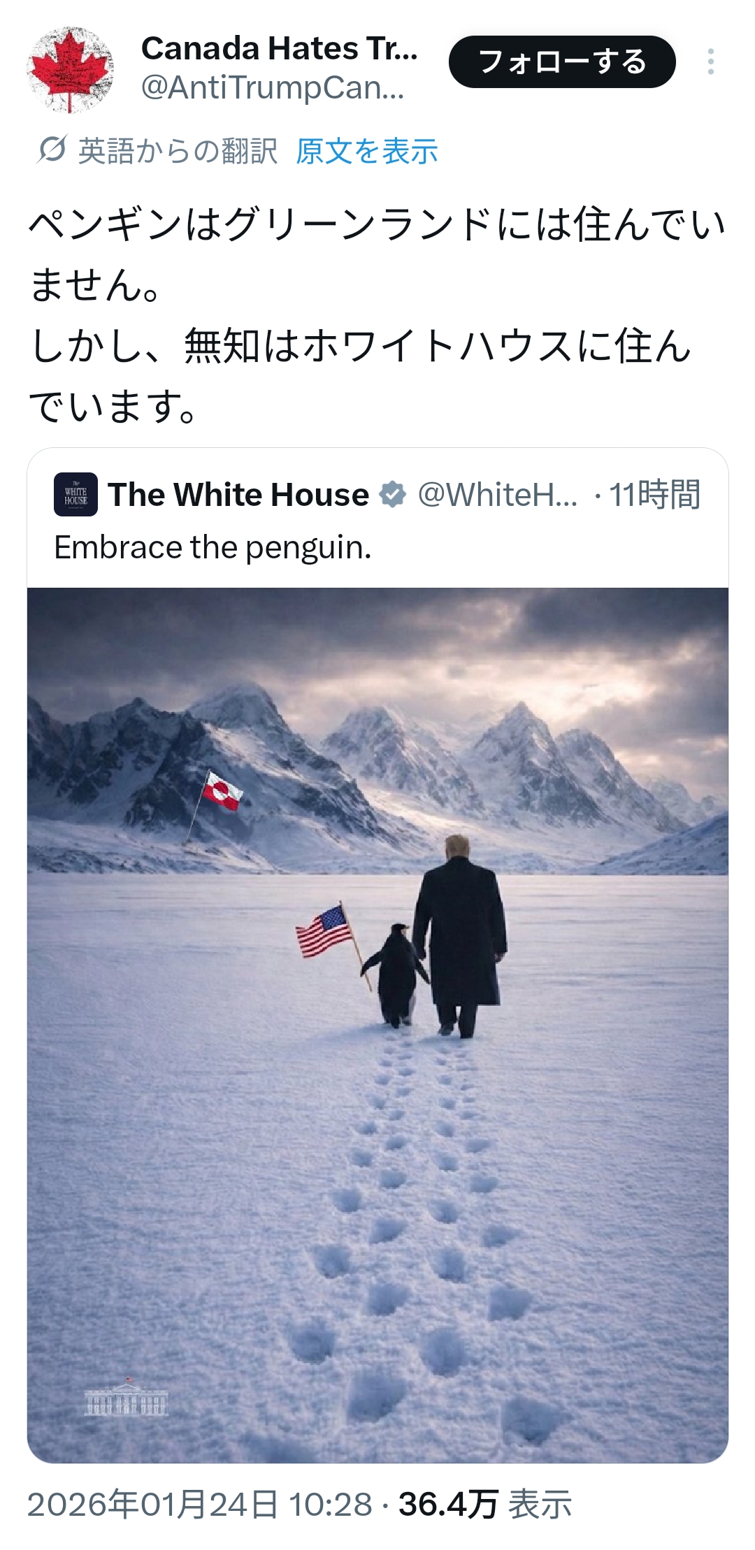 | … | 95626/01/29(木)19:44:51No.1397002095+割と日本がアメリカの要求に唯々諾々と従っちゃってるのがトランプを勢いづかせちゃった原因の一つではあるなあとは思う |