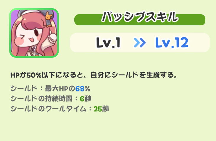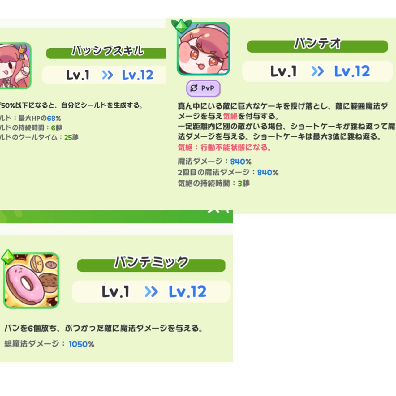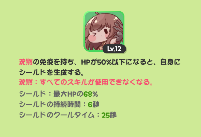 | … | 78226/01/29(木)20:13:17 ID:lMqGKdG6No.1397012940そうだねx9エシュールとポーシャーどっちか入れ替えかなって思ってスキル見比べたにゃん ・パッシブ ポ:スキルダメージ42%カット エ:HP50%以下時最大HPの68%のシールド6秒間付与(CT25秒) ・高学年スキル ポ:CT18秒 ランダム2体行動不能 エ:CT28秒 中央1体にスタン+周囲にスタンとダメージ