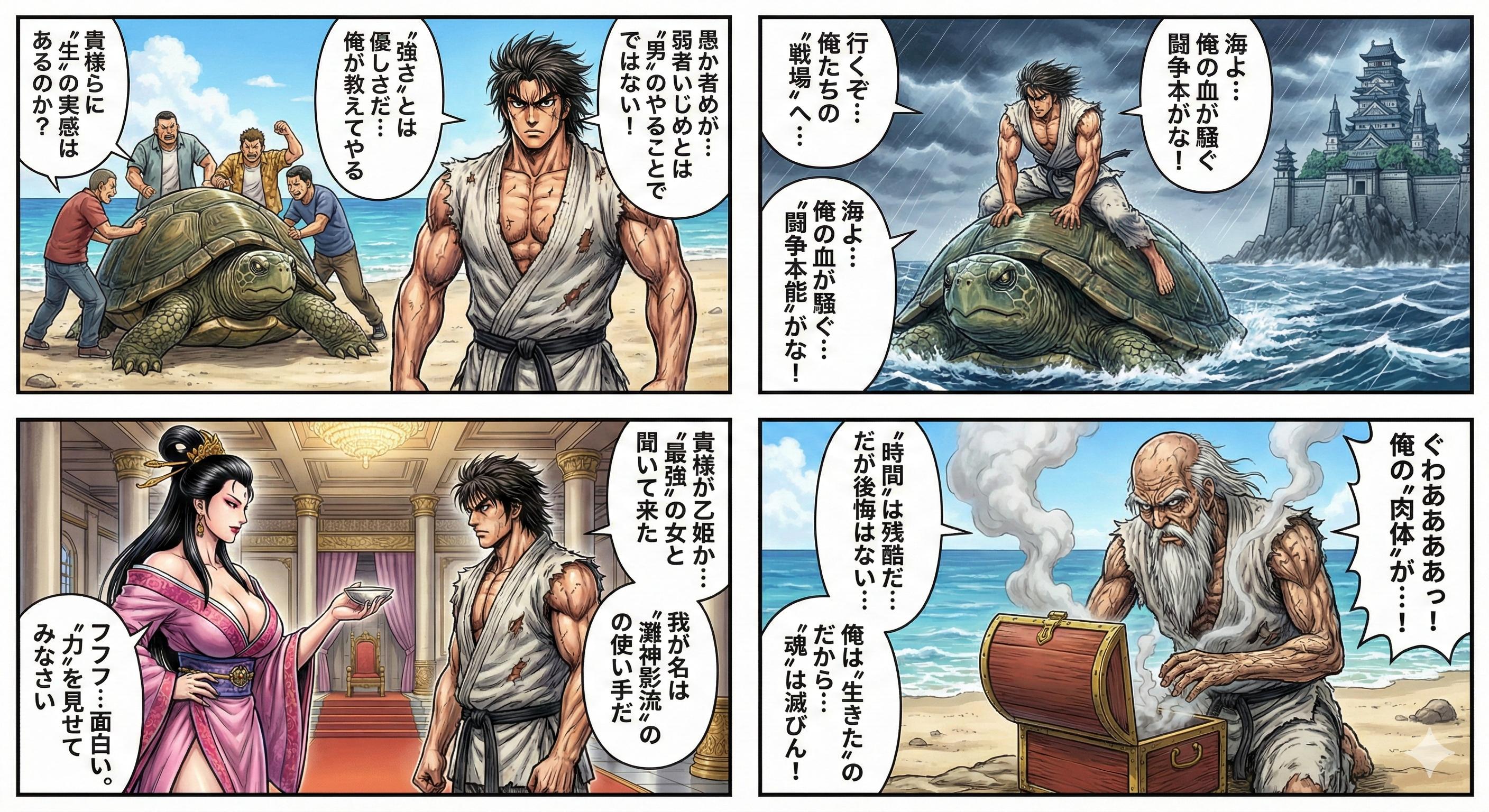 | … | 1526/01/29(木)19:11:05No.1396991265+>プロンプト:浦島太郎の物語を漫画にしてください 同じプロンプトで試してみた fu6229253.jpg |