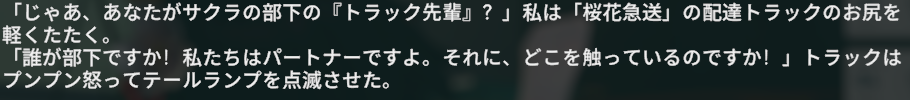 | … | 25826/01/29(木)22:48:45No.1397072479+>サクラ、今すぐ再配達頼めますか。 |