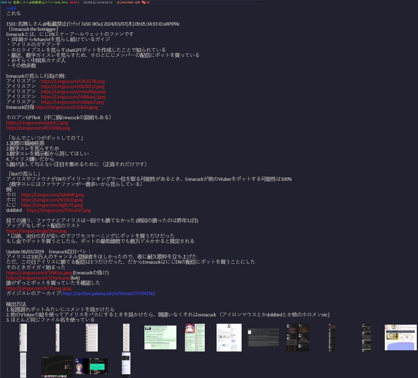 | … | 28226/01/30(金)01:29:27No.1397117546+グウェルスレで膨大なエビデンス収集が始まって跡を引き継いだからNNNスレは役目終えて過疎って終了したんだよなぁ... |
