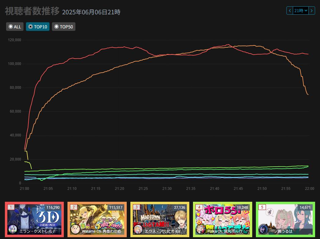 | … | 1626/01/29(木)23:44:14No.1397090609そうだねx6>そろそろ懲りずにbot連呼始めたからまたにじさんじ特有の同接bot集周知するちょうどいい頃合いかもな |