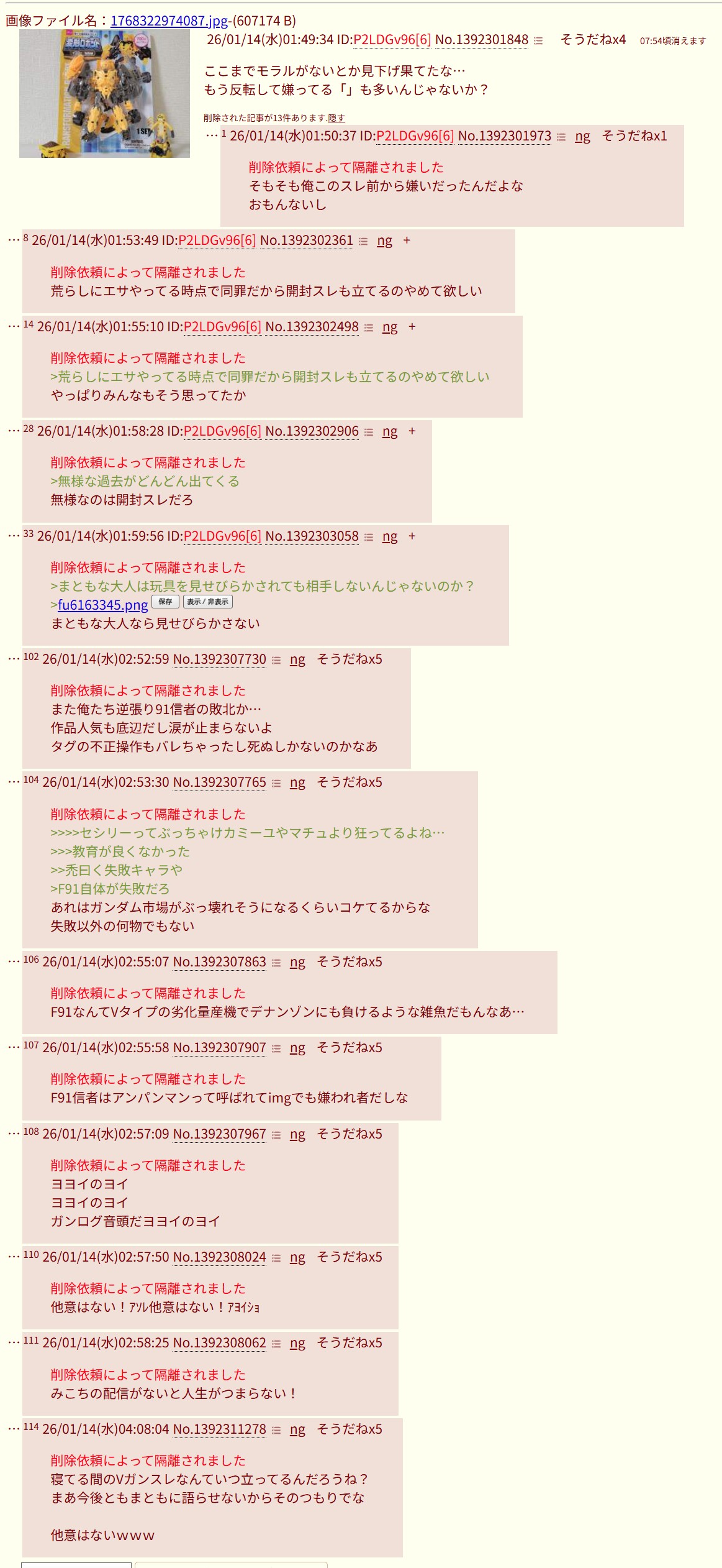 | … | 15426/01/30(金)00:24:28No.1397103257+エーッ!? 消すん(失敗)ですかぁ!? |