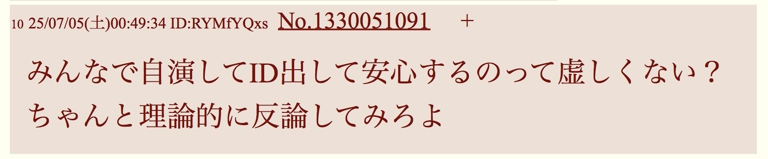 | … | 11226/01/30(金)20:33:58No.1397307181+ツールの有無に関わらずid出してるやつはまともではない |