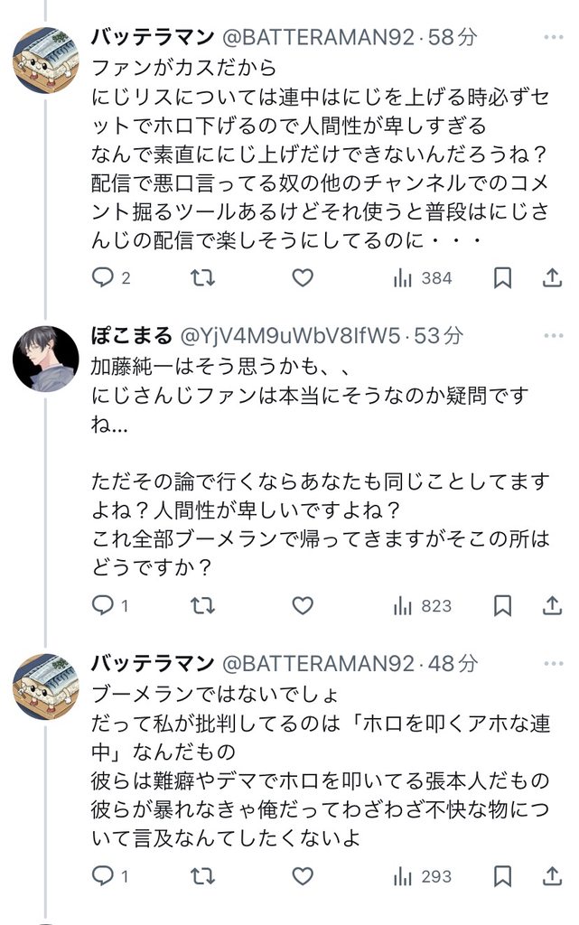 | … | 12226/01/30(金)20:38:11No.1397308901そうだねx3>ホロライブ粘着関連は多順トップまで残っててにじさんじ関連は爆速隔離 |