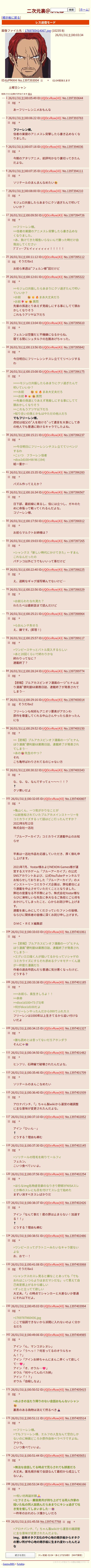 | … | 12126/01/31(土)02:21:39No.1397422899+だんだんナギガイのレス分かるようになってきたんだよな。 |