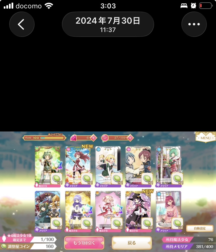 | … | 926/01/31(土)02:39:31No.1397424795そうだねx1じゃあたわしもマギレコのガチャスクショはるの |