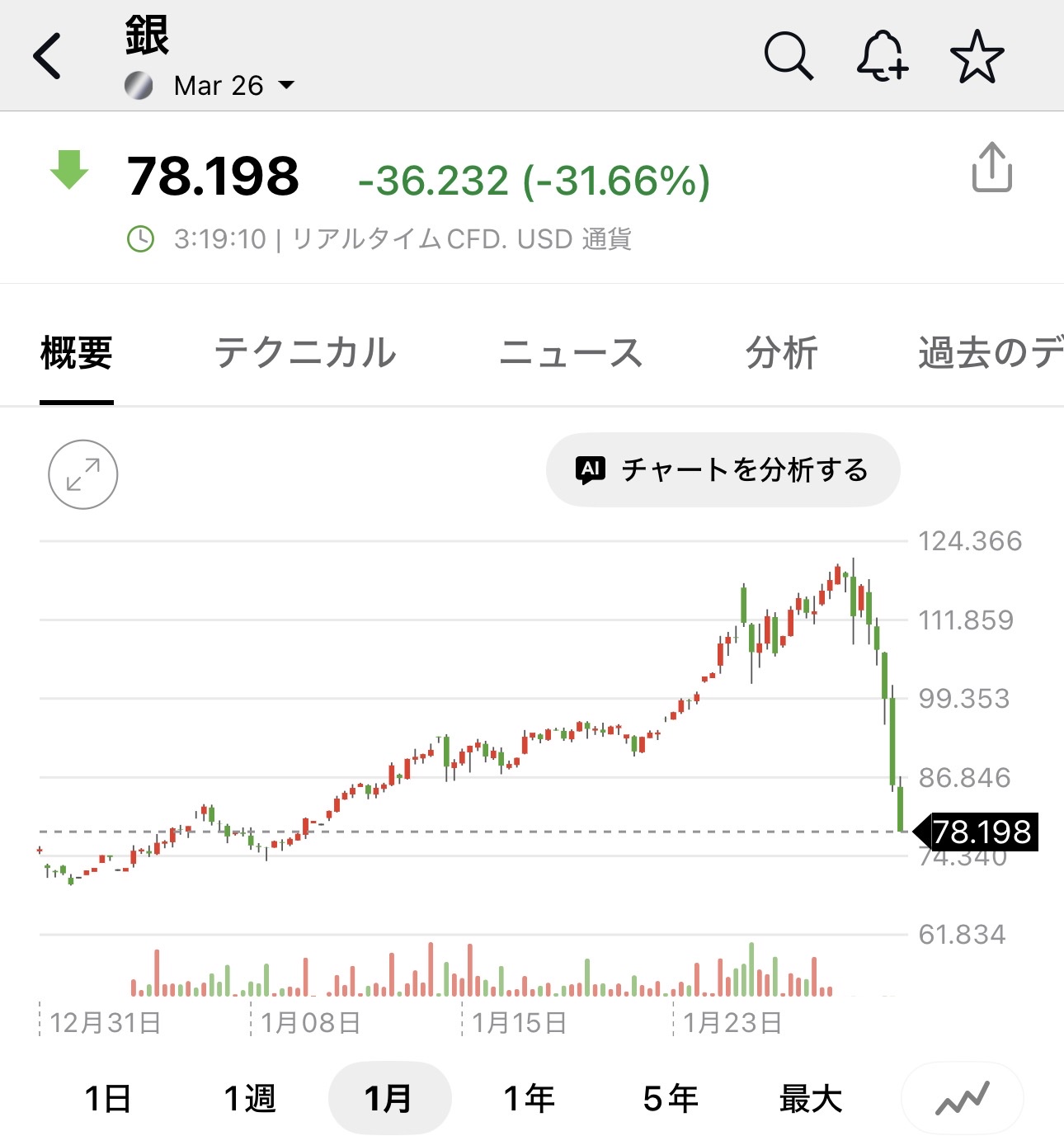 | … | 1126/01/31(土)04:31:34No.1397431325+だから銀はボラ高いから気をつけろってあれほど… |