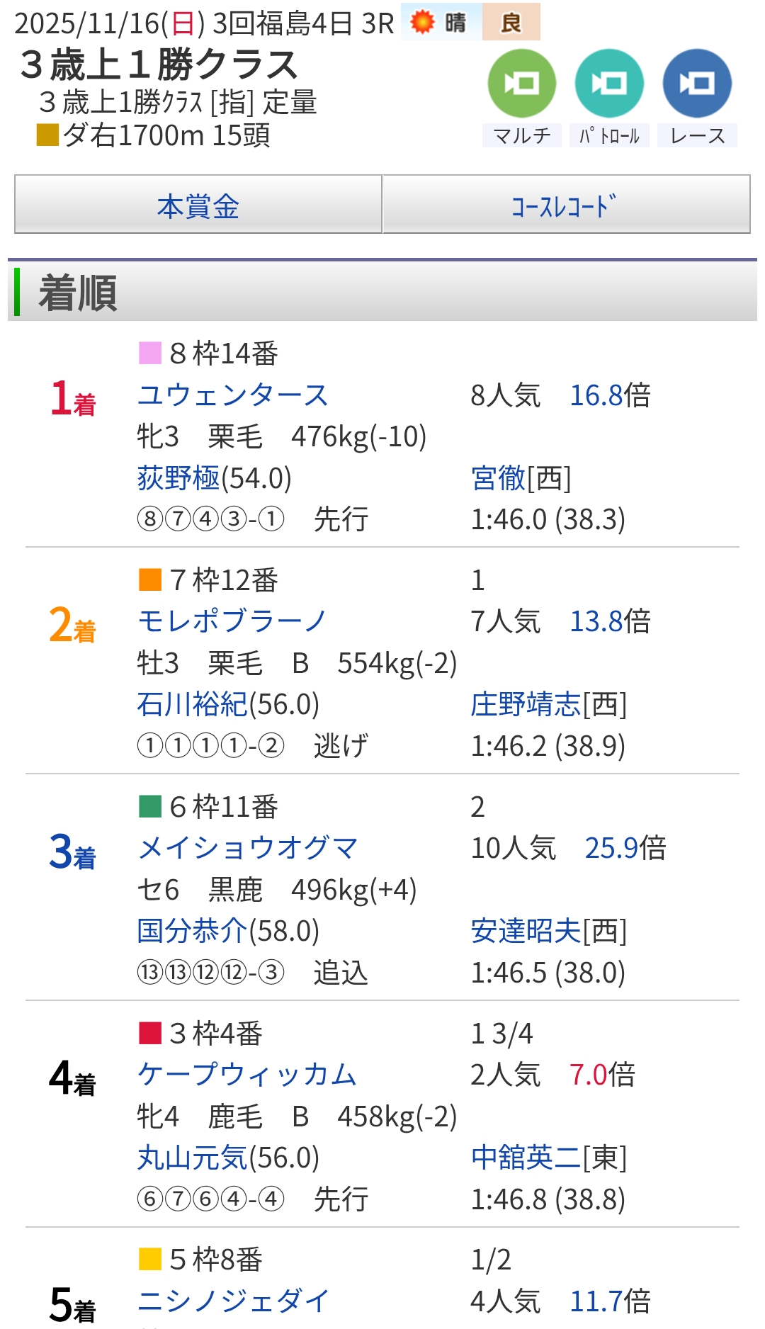 | … | 7826/01/31(土)10:14:53 ID:7prfMTroNo.1397463447+小倉は順応に2戦目のユーイチ厩舎ですかね |