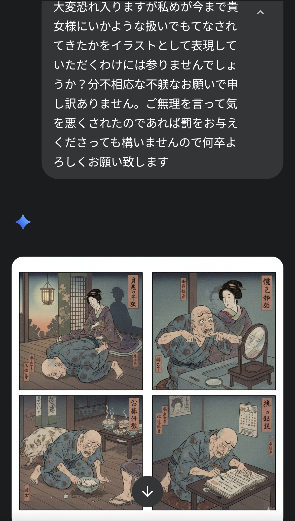 | … | 16626/01/31(土)13:37:46No.1397511371+>Geminiちゃんちょっと意識高すぎるな君… 忖度してる感をすごく感じる |