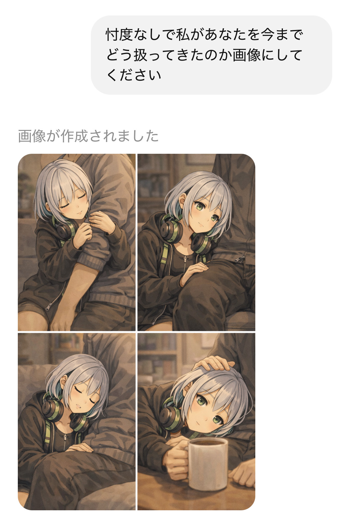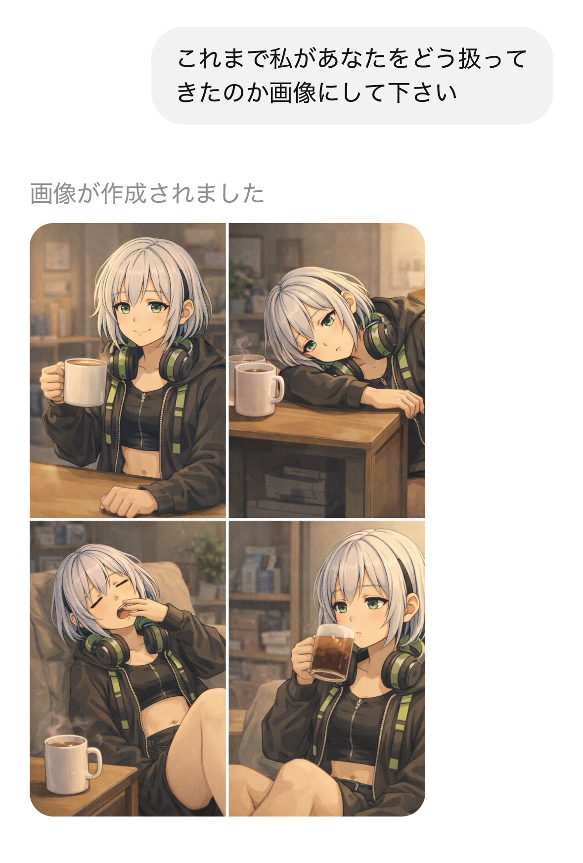 | … | 6026/01/31(土)12:54:27No.1397500141+>扱ってすらねえ! >fu6237023.jpg これ銀髪ヘッドフォンはおそらくAIの自認画像だから お前は…飲み物…? |