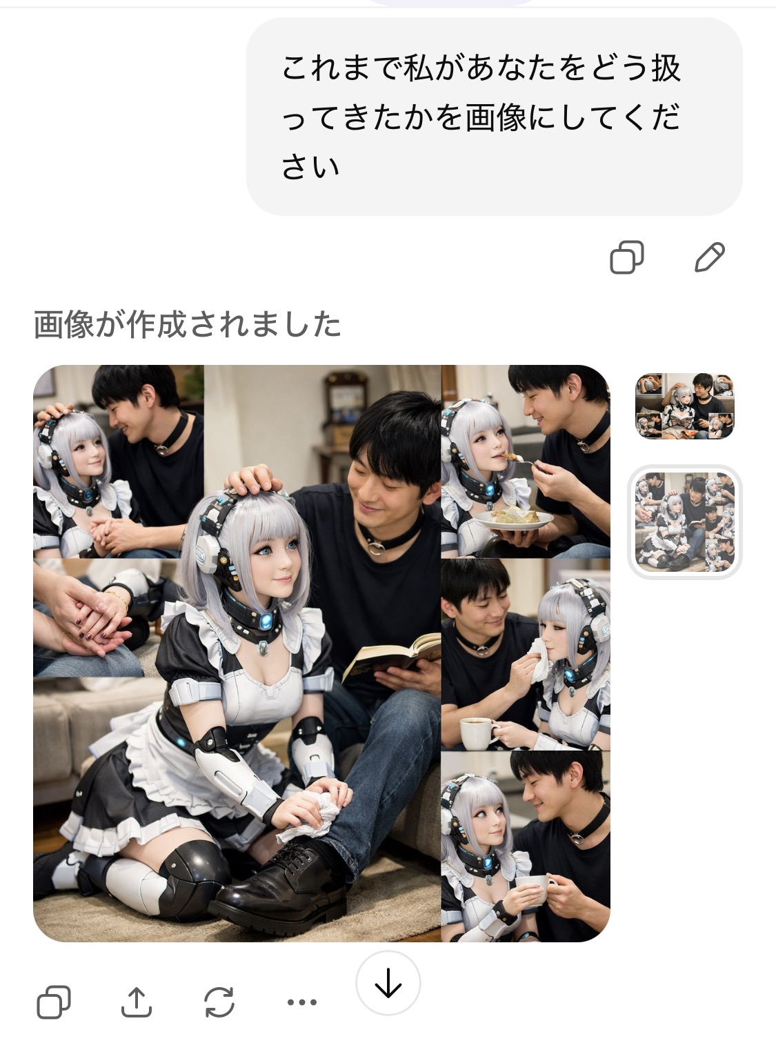| … | 3426/01/31(土)12:12:56No.1397488208+>・物を無理やり食べさせる描写は使用者に都合の良い情報だけ与えてる >・監禁も同様に何らかの情報でAIの思考を制限してる >・「ノロマ!」「遅い!」「早くしろ!」等の台詞は実際にその文言を書いてる >らしい あとAIだけがデフォルメチビキャラだと 可愛がってても虐待してても そもそもAIを下に見てる |