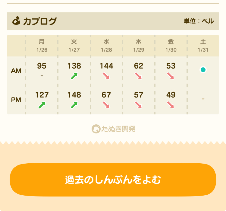 | … | 626/01/31(土)10:28:53No.1397465979+現在のカブ価 |