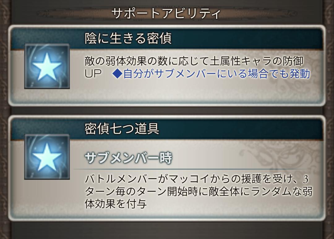 | … | 90526/01/31(土)13:14:49No.1397505676+敵の特殊技を受けた次のターンにデバフ全解除の全回復で解除したデバフと同名の特殊技を無効なんだよ |