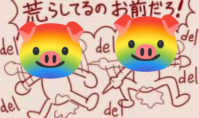 | … | 7226/01/31(土)22:58:31No.1397681621そうだねx2>👵知らない分かんない〜 >👵虹色の豚を貼るやつは荒らし!!!!! >☝️ >🤣 ただの虹色の豚でイライラするってことは分かってるよなこれ… |