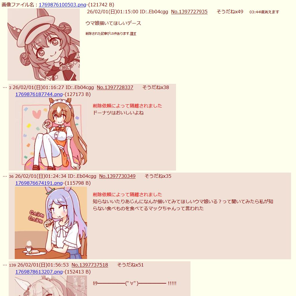 | … | 726/02/01(日)01:52:18No.1397736505+馬券買ってそう |