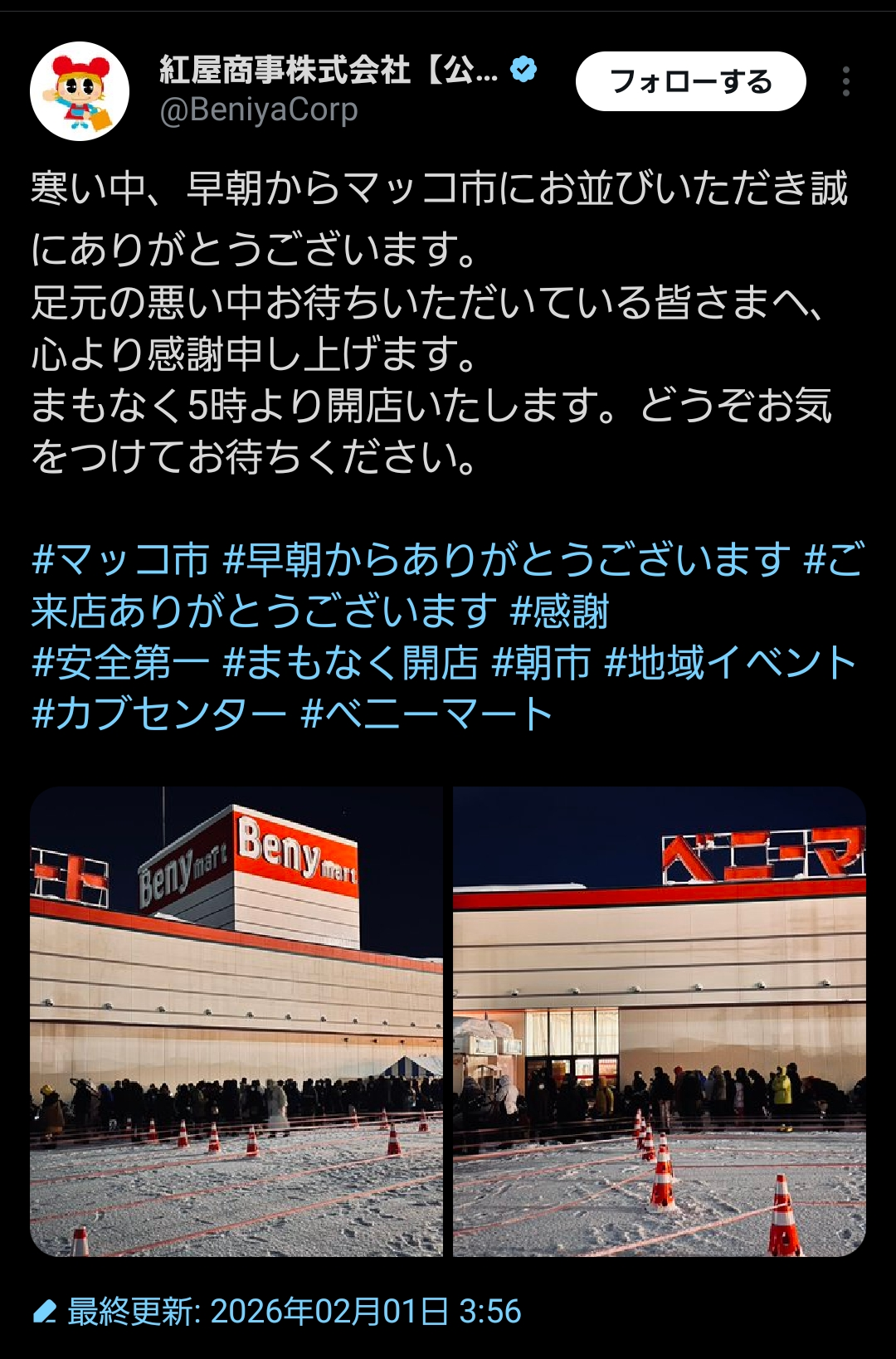 | … | 6126/02/01(日)09:15:23No.1397781957+>5時開店…?準備してとか雪かきとかどうしてるんだ… |