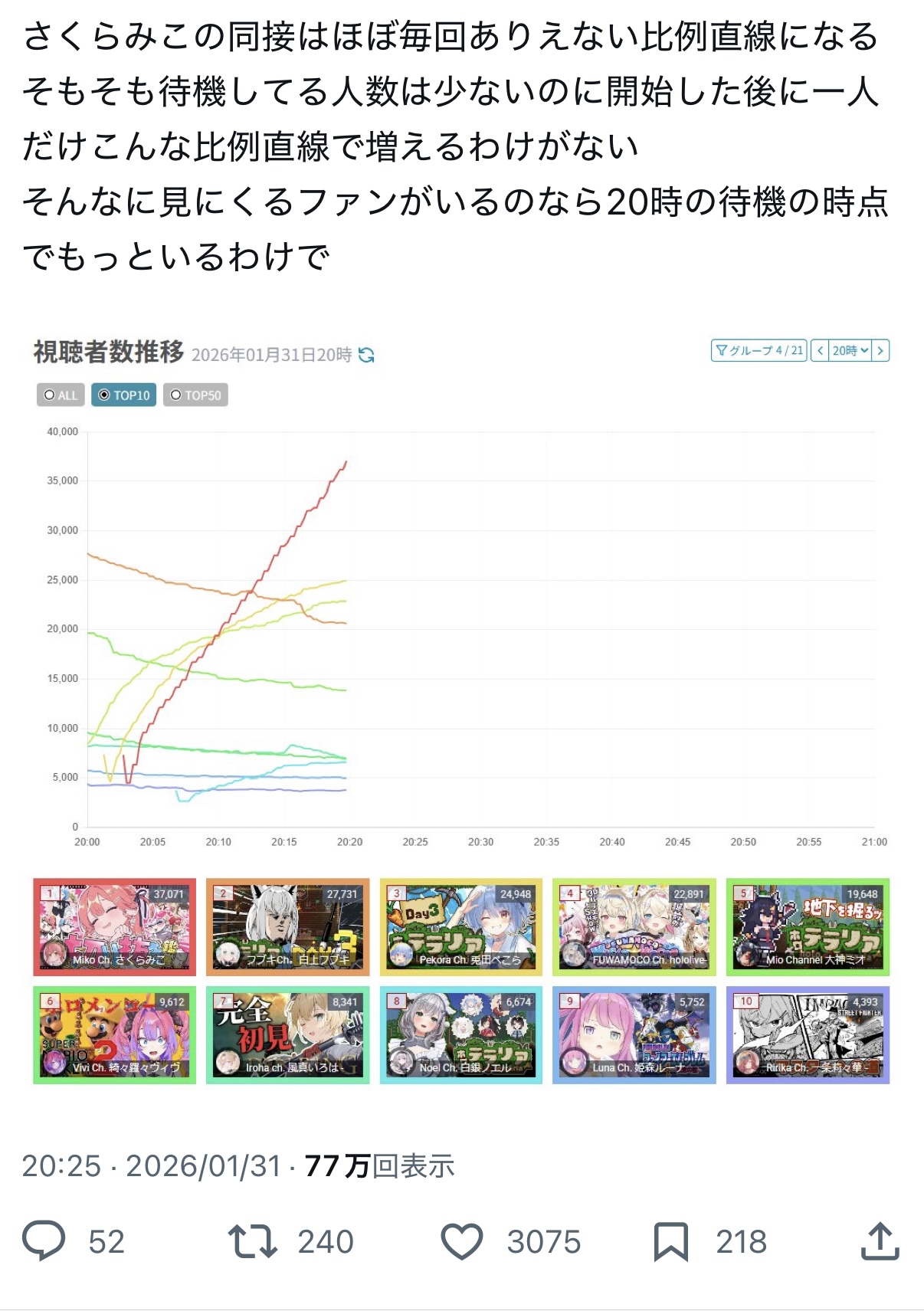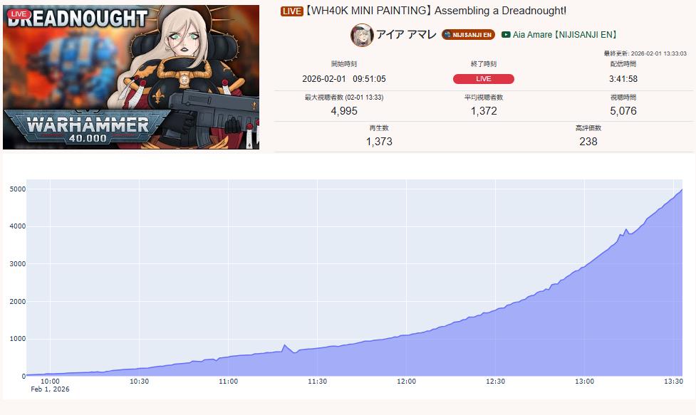 朝4時に同接5万のピーク迎えてコメントしてる人数が5時間で300人とかの配信がブッチギリで不自然だろ