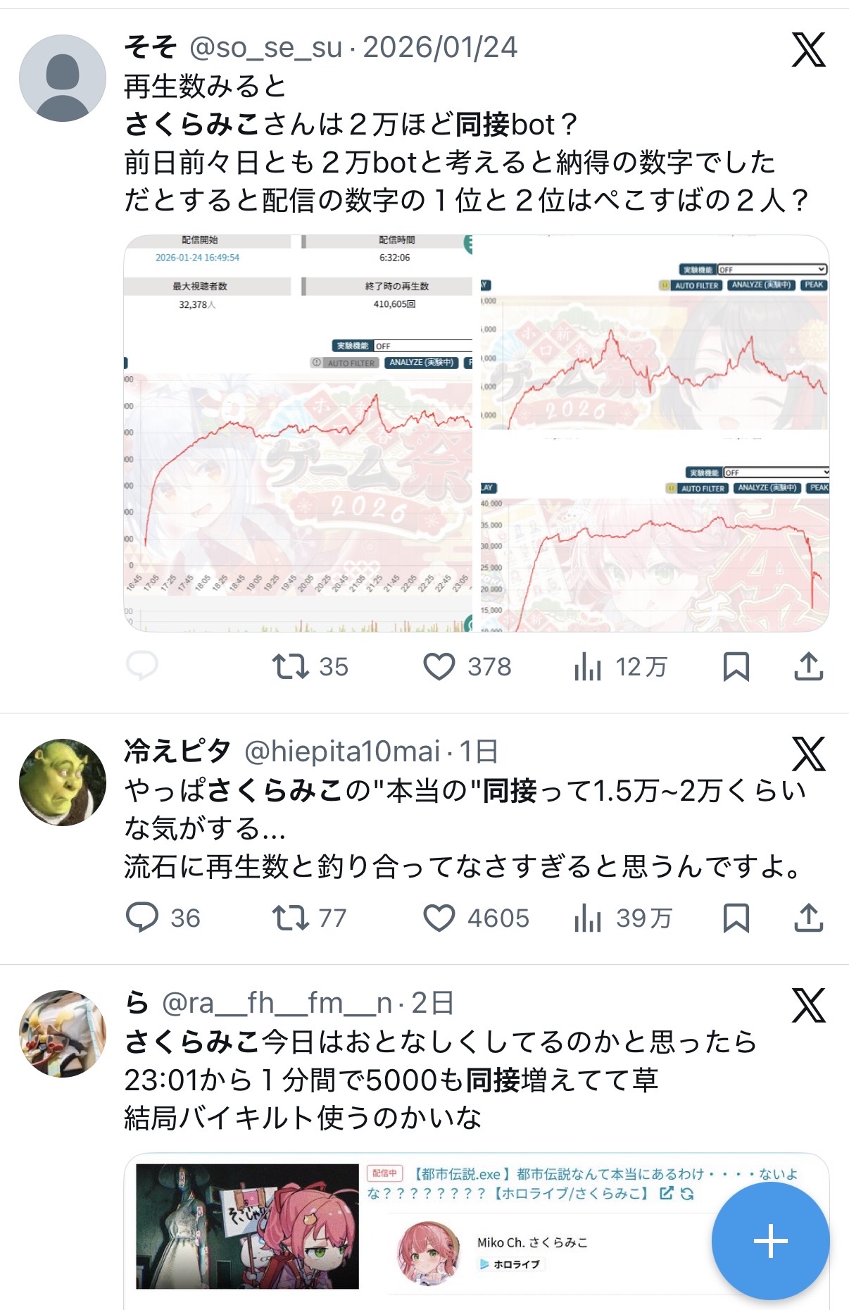 >同接のグラフにまでケチつけられるようになってる…