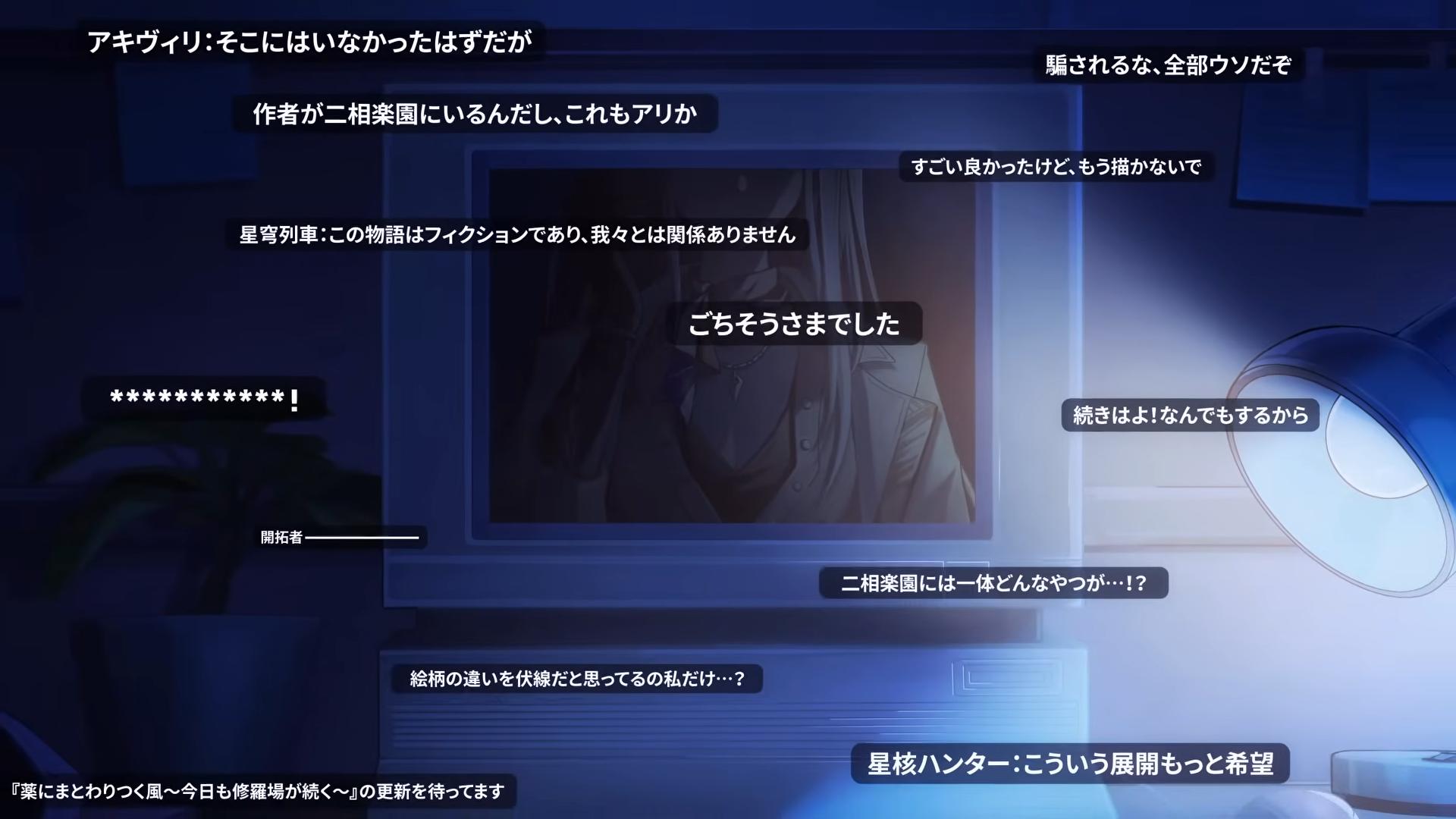| … | 8826/02/01(日)13:31:41No.1397846134+多分ストーリー全部終わって見返したら別の意味で全然笑えないPVとかになるんでしょ知ってるぞ |