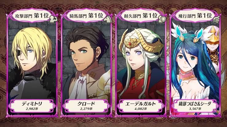 | … | 3426/02/03(火)19:21:34No.1398507852+純粋な人気投票では無いにしてもアイクを押しのけてディミが1位になるのは凄いな |